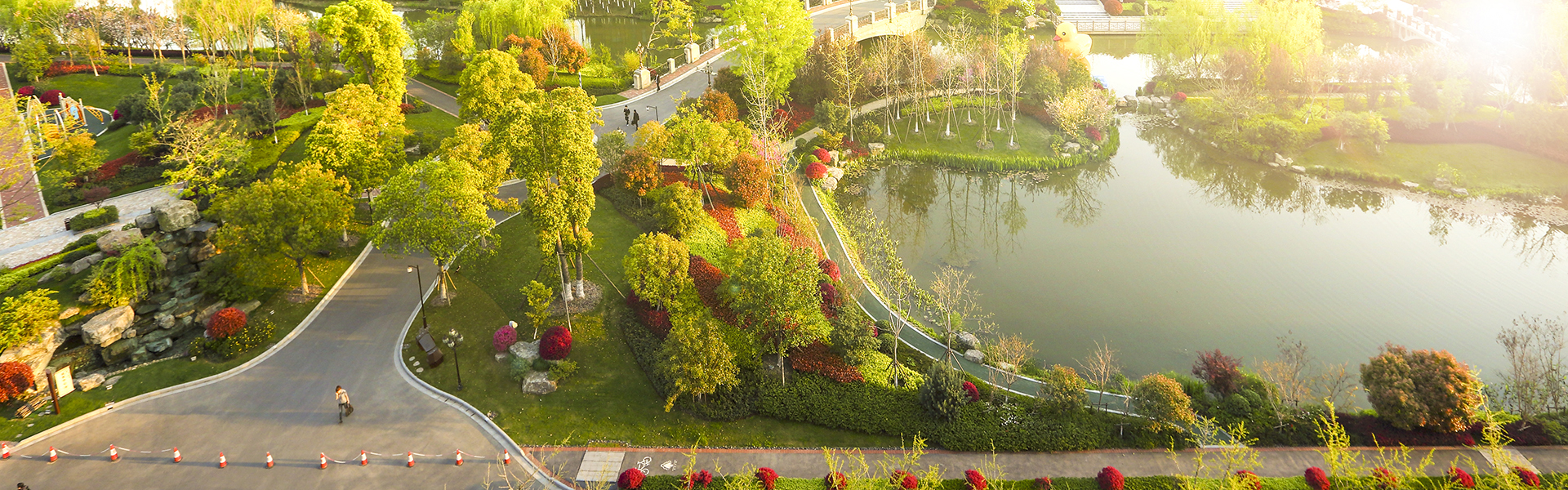 項目依地造景,南低北高,園區(qū)規(guī)劃以“自然,野趣,生態(tài)”為設(shè)計原則,精心打造逾60000㎡的濱水濕地景觀帶以及25000㎡生態(tài)果林。