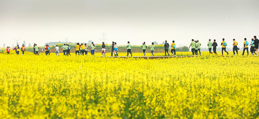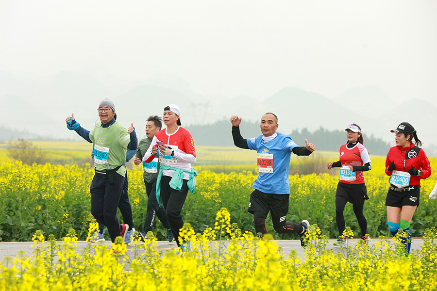 在本次比賽中,馬拉松賽道途徑金雞峰叢景區(qū),跑友們將在萬畝花海的簇?fù)硐?,向勝利的終點(diǎn)奔跑,共賞油菜花齊齊盛放之美。