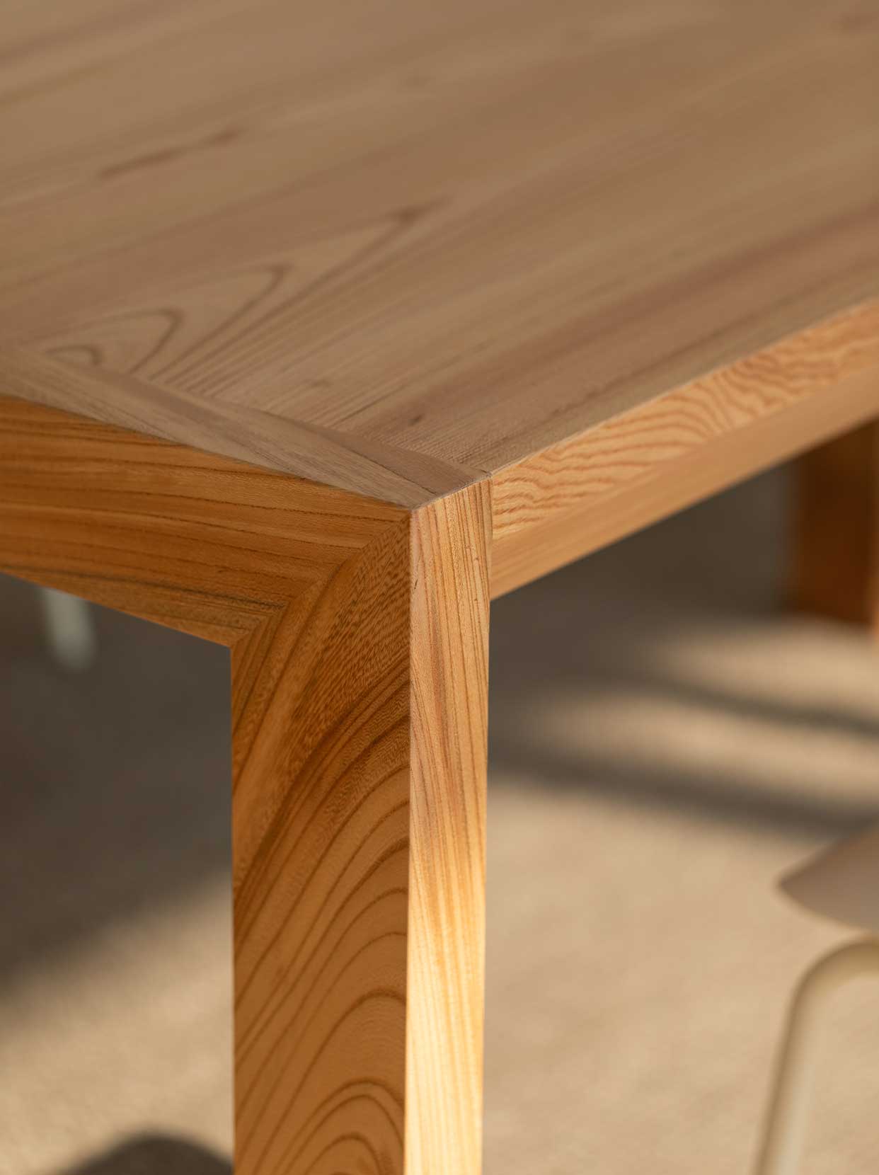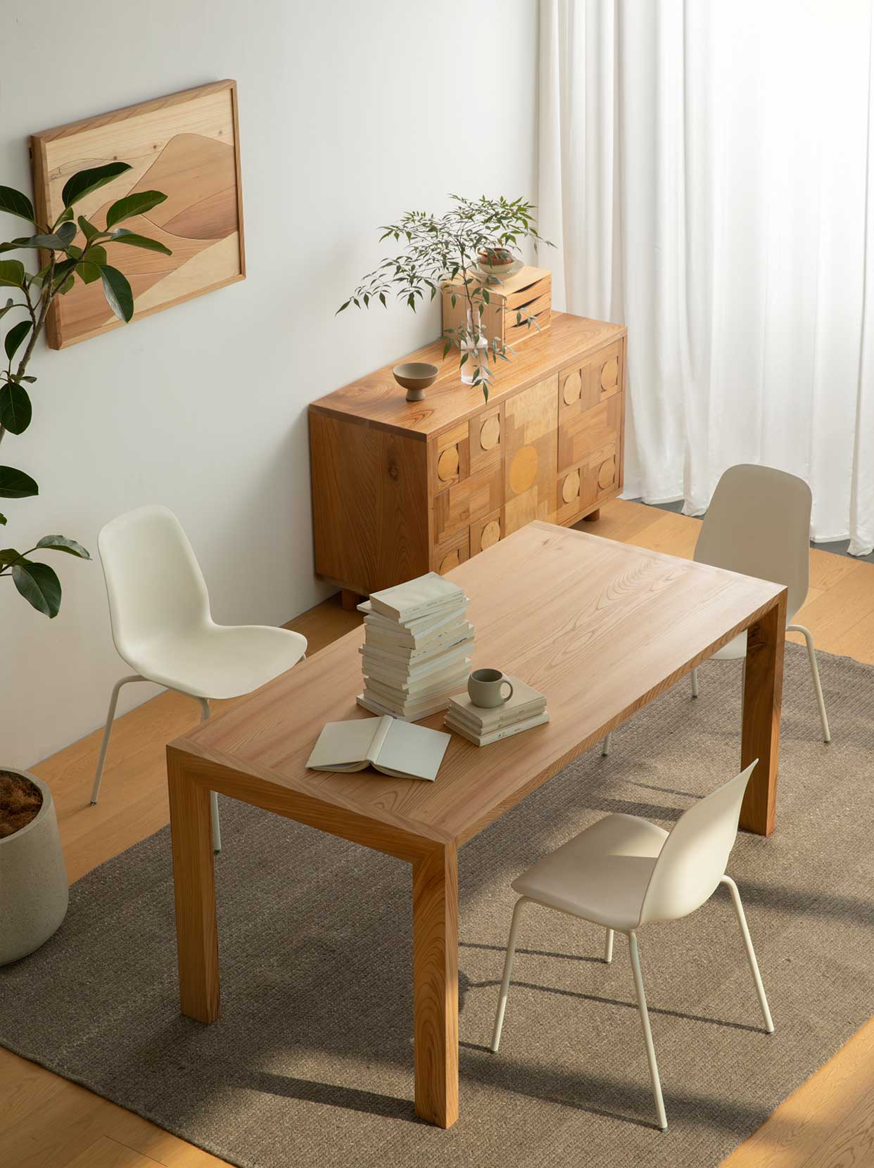 ?寬闊的櫸木拼板桌面,用料扎實,紋理細膩
