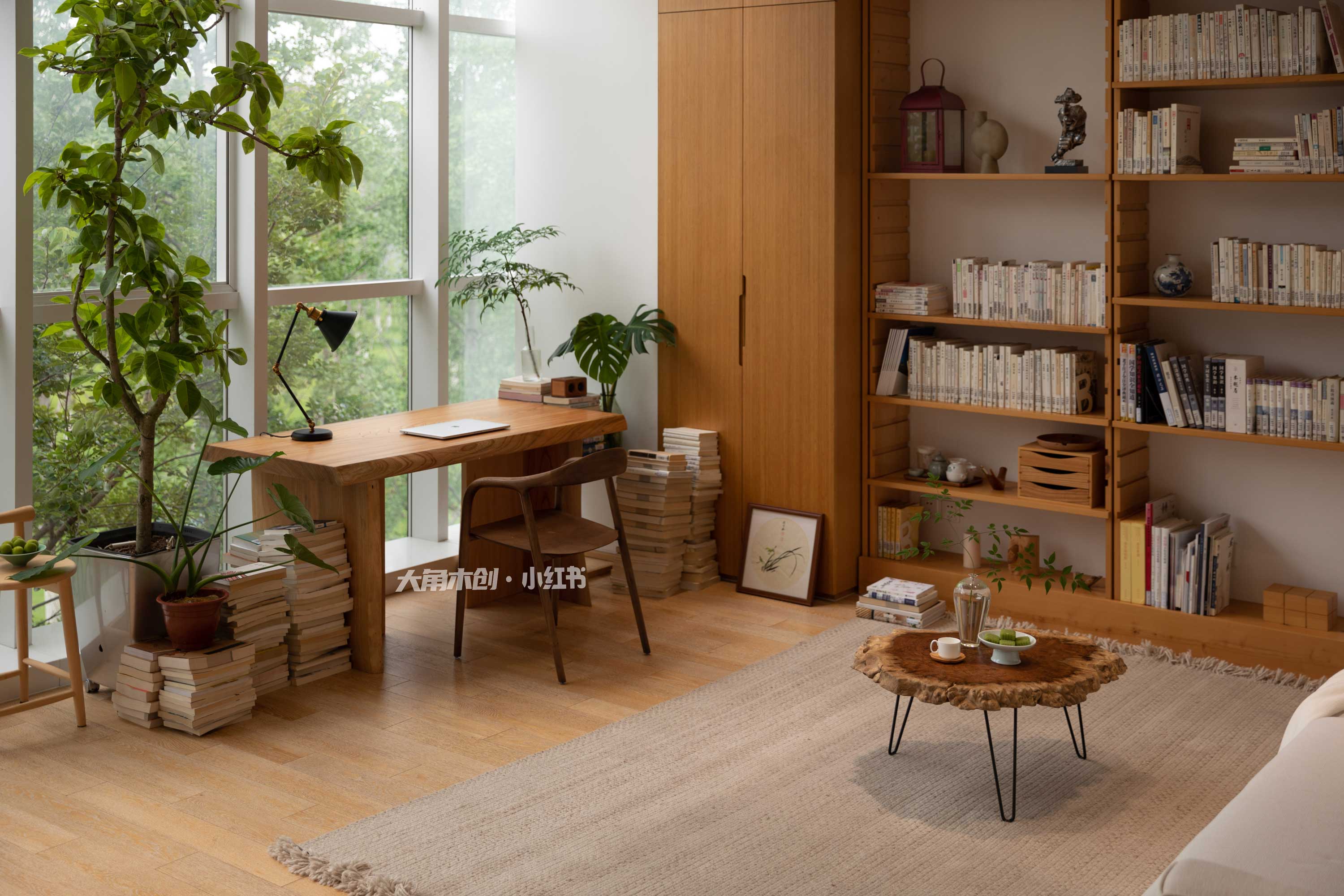陽光透過窗簾灑進(jìn)房間落在木地板上