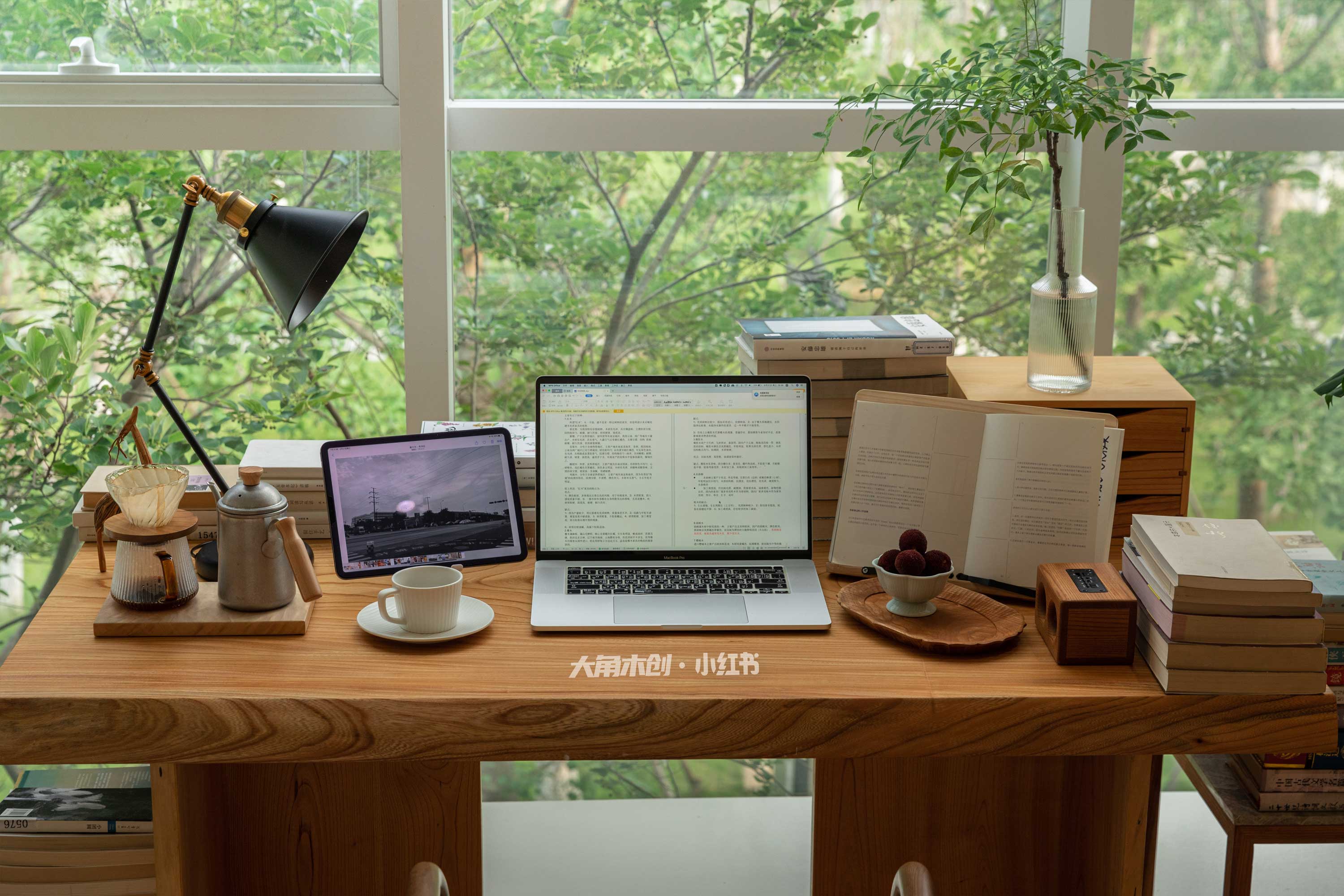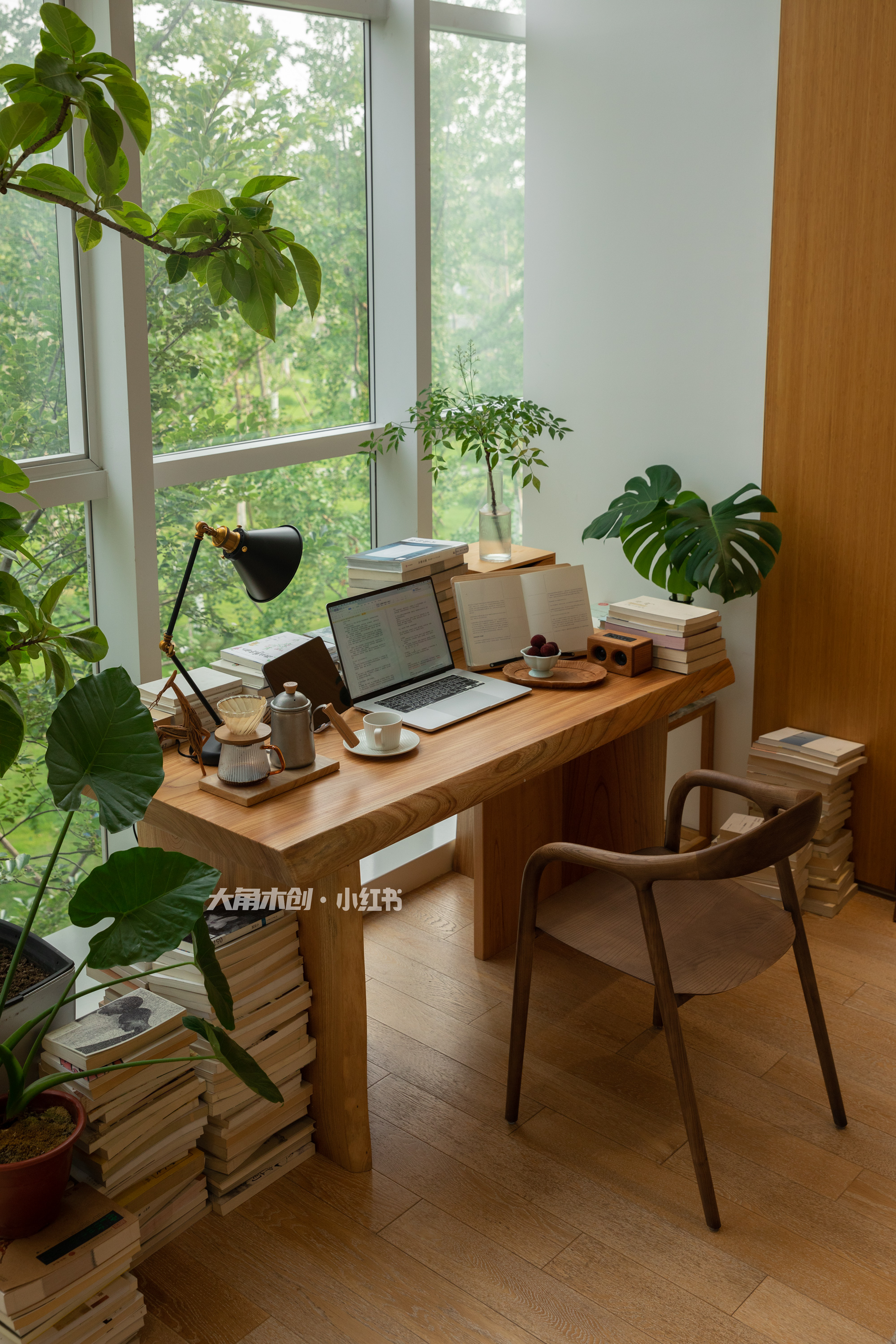 落雨時(shí)窗邊書桌上溫暖人心的臺(tái)燈
